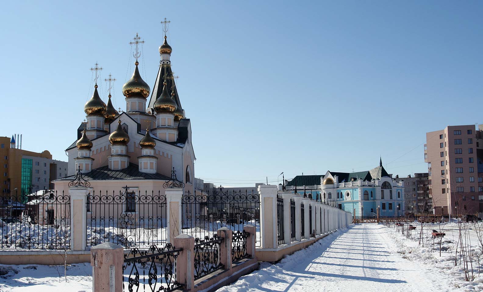 La capital de la regió de Sakhà, al costat del riu Lena, té 6 mesos a l'any (tardor i hivern) amb temperatures mitjanes per sota dels –10 °C, que arriben a mínimes de fins a –60 °C entre desembre i gener, la qual cosa dificulta enormement fins i tot poder-se desplaçar.