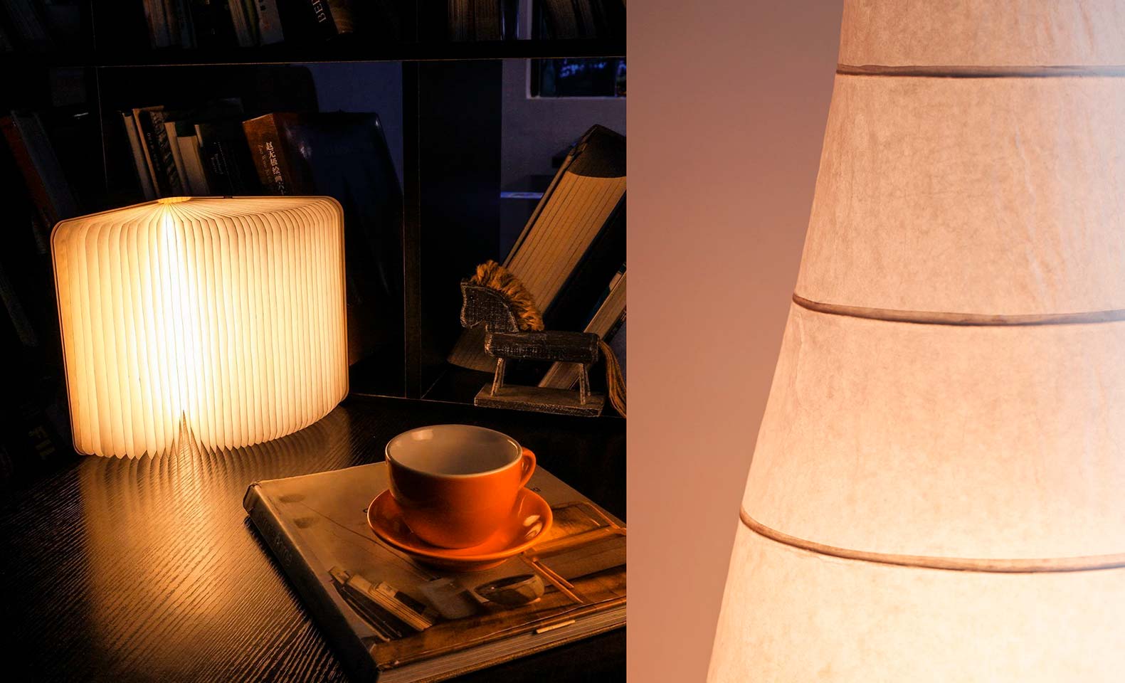 One of the easiest ways to decorate your home with light is to have a look at standardised solutions such as ambient lamps. There are many different models, from vertical ones with screens that blur the output of reddish light, to false accordion-style books that bring originality to shelving.