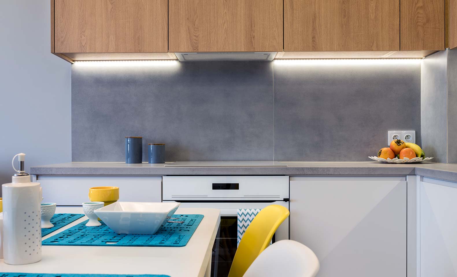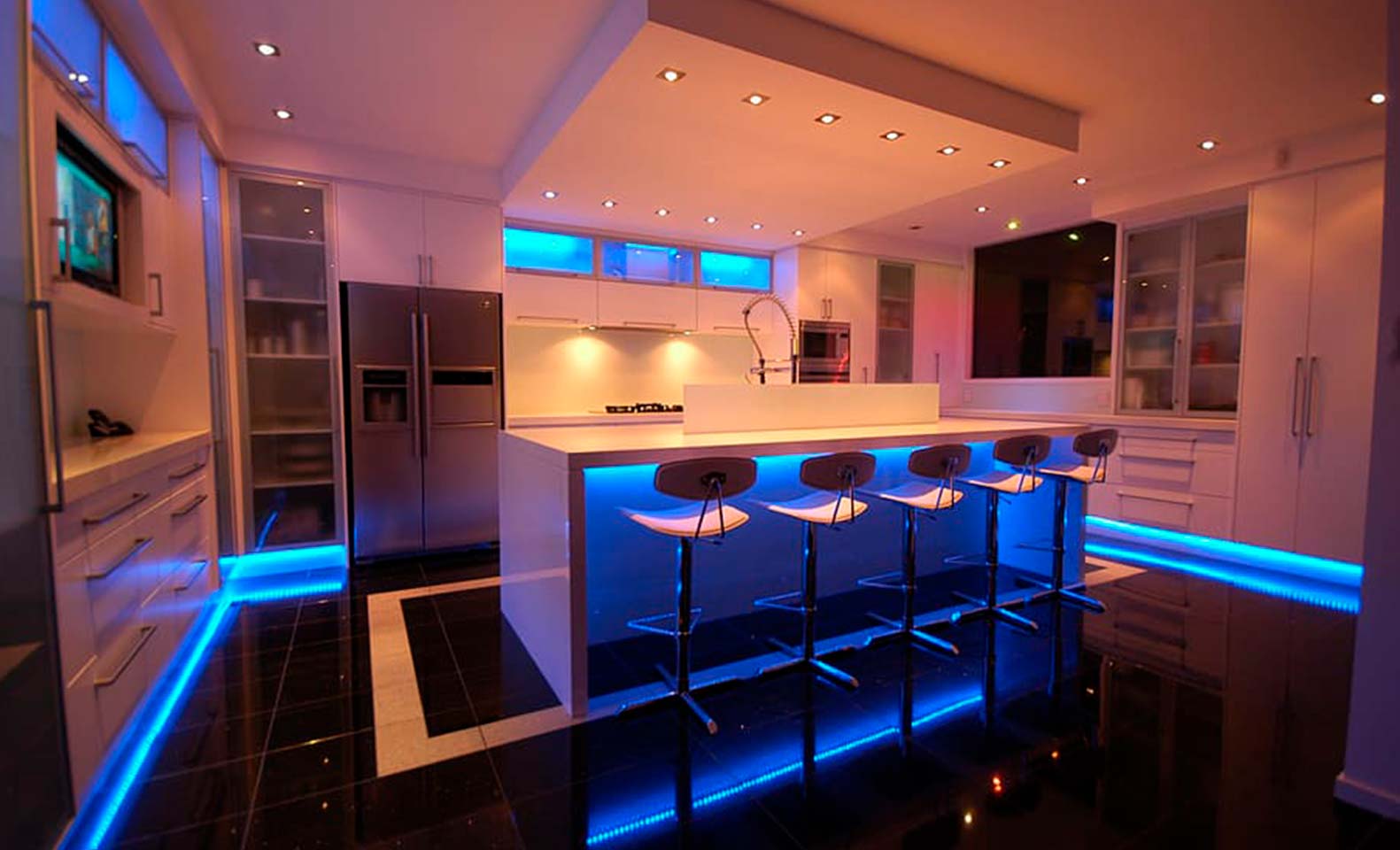 Of course, in addition to fit them on top, it is possible to fit this lighting system underneath furniture. On baseboards, under drawers, behind electrical appliances, inside cabinets or around furniture are other possibilities. A white led strip underneath kitchen units will allow you to see the entire worktop.