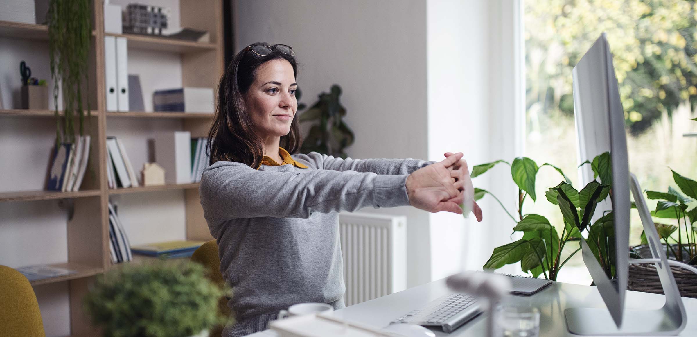 To relieve eye fatigue (asthenopia) derived from looking at a closely positioned screen, it is advisable to look into the distance from time to time. For example, through a window next to the desk, taking advantage of interruptions such as calls to fix the eyes on objects as far away as possible. And, at the same time, reduce the lumens on the screen to adapt them to the ambient light.