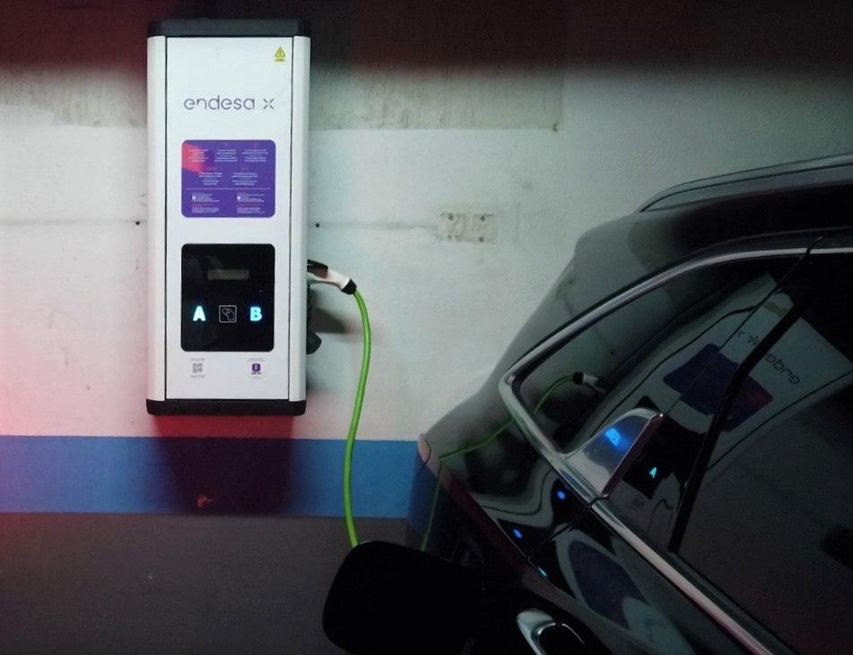 - Carga en casa: Una forma conveniente de cargar tu vehículo eléctrico es hacerlo en casa. Para ello, necesitarás instalar un punto de carga (cargador de pared específico) en una plaza de garaje o estacionamiento. Estos cargadores se conectan a una fuente de alimentación eléctrica y garantizan una carga lenta o rápida, dependiendo de tus necesidades y de la capacidad del cargador. La instalación del cargador cuesta alrededor de unos 1.000€ y solo necesitas avisar a tu comunidad de vecinos de tu intención de instalar este sistema. El momento idóneo para realizar la carga es por la noche. Además, existen aplicaciones con las que podrás supervisar todo el proceso a través de tu móvil: desde cómo va la carga, con qué potencia está llenándose la batería, e incluso, programar el encendido de la calefacción o las luces de tu coche.